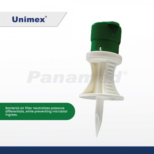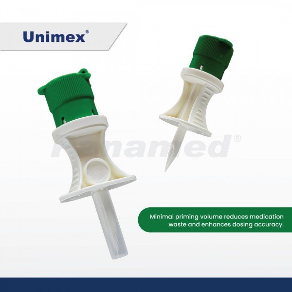 Unimex UnoSpike Withdrawal Cannula, ECO features an integral filter with air eliminating function, engineered for safe aspiration of fluid medications from drug vial.