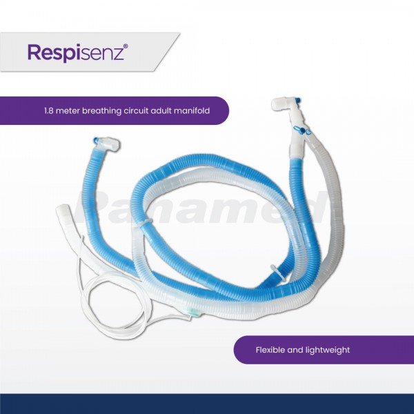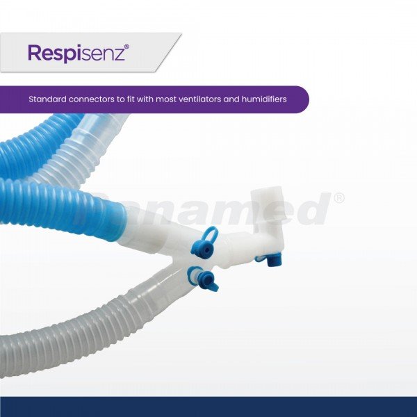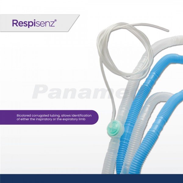 - Bicolored corrugated tubing, allows identification of either the inspiratory or the expiratory limb.
