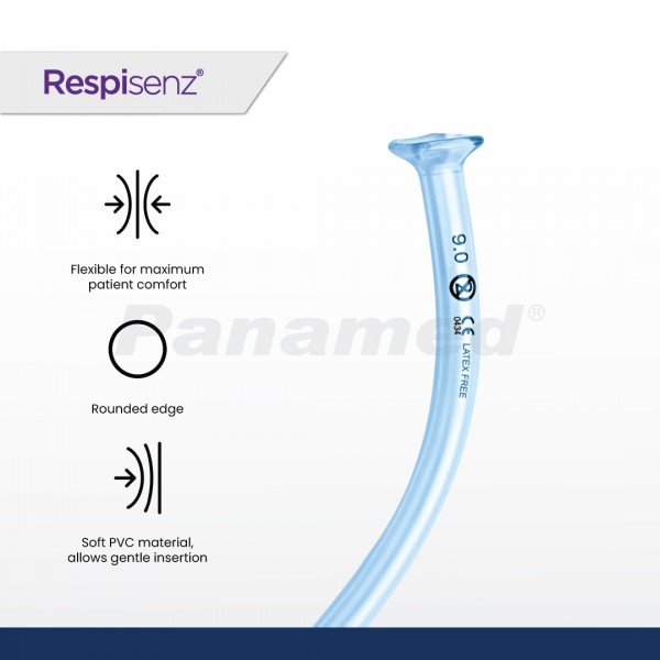 A soft, flexible, uncuffed tube placed through the nasal passages so that the distal tip rests in nasophrynx. It is used to maintain the free passage of air to and from the lungs in patients with facial trauma or lockjaw or in nearly comatose patients. Ideal to use when patient’s oral passage is not accessible, it also allows nasotracheal suctioning.