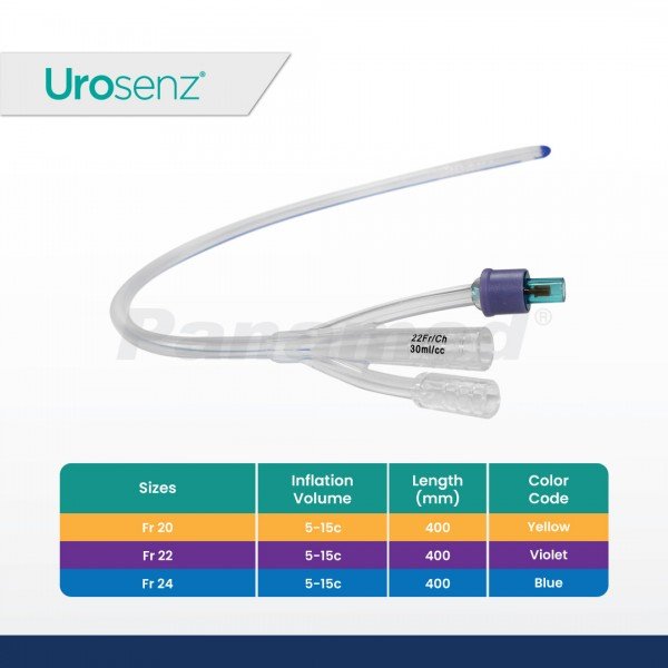 Urosenz Silicone Foley Catheter is made from 100% silicone, biocompatible and completely inert, preventing tissue irritation and encrustation during extended period of indwelling bladder catheterization.
