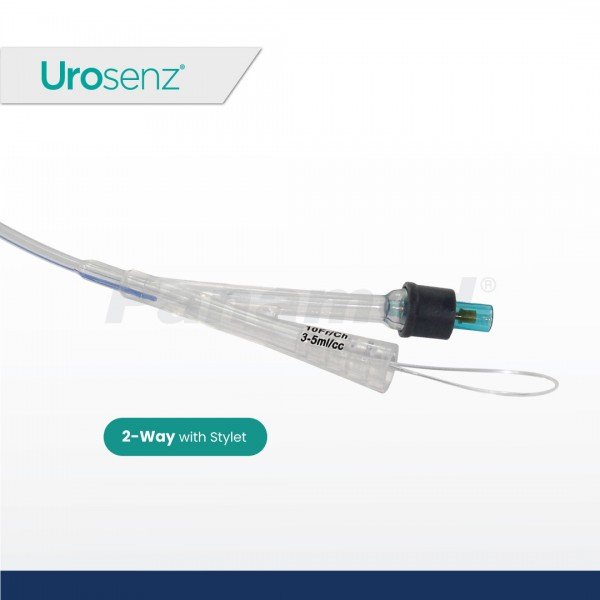 Urosenz Silicone Foley Catheter, 2-Way w/ Stylet (Sold by box of 10s)