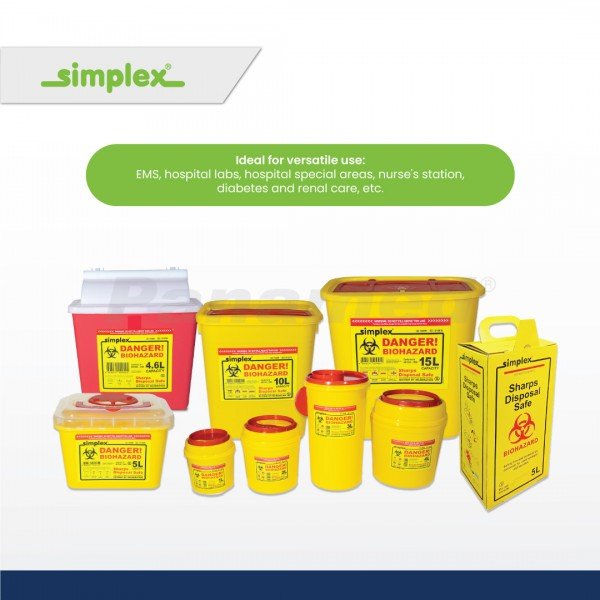 • Simplex Sharps Disposal Safe Box, made from biodegradable cardboard, easy to store and to assemble