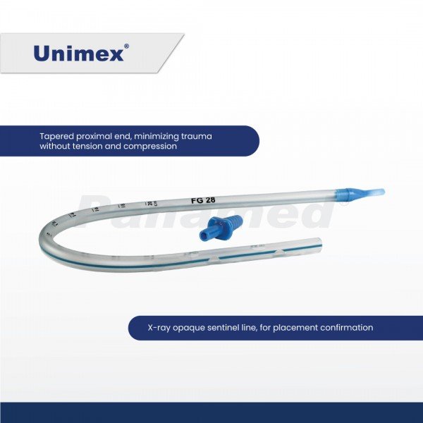 Unimex Chest Drainage Thoracic Catheter designed for easy and atraumatic removal of air or fluids that are found in the pleural cavity to relieve life-threatening chest conditions.