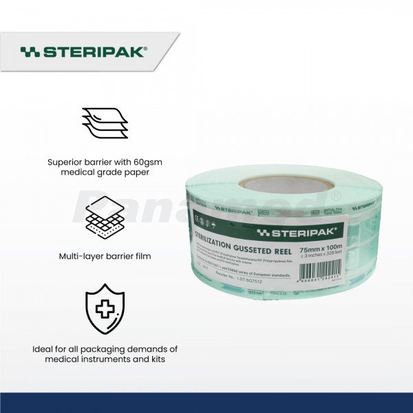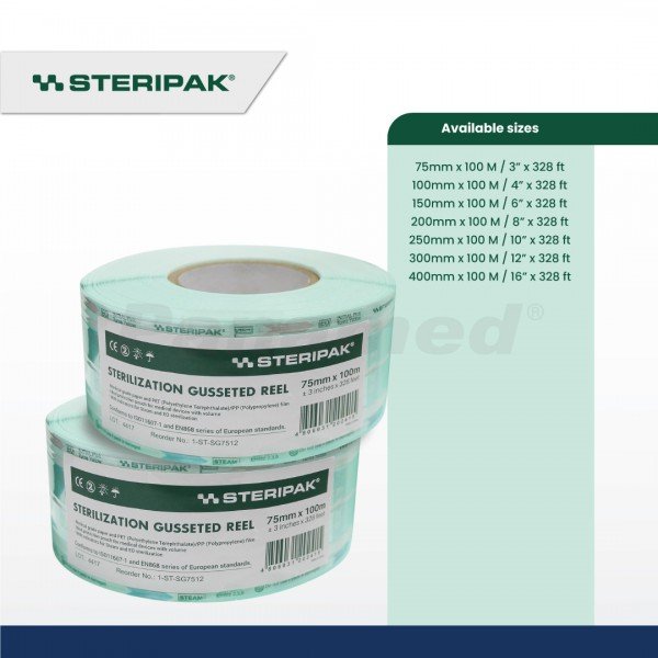 Steripak sterilization reels are made from medical grade paper and multi-layer barrier film, designed for easy and reliable sterilization. Ideal for all packaging demands of medical instruments and kits.